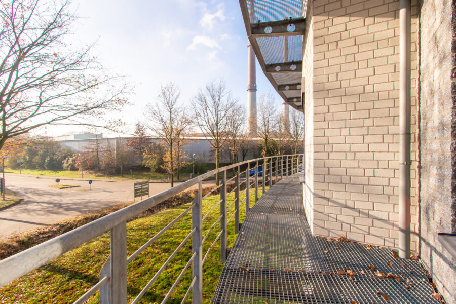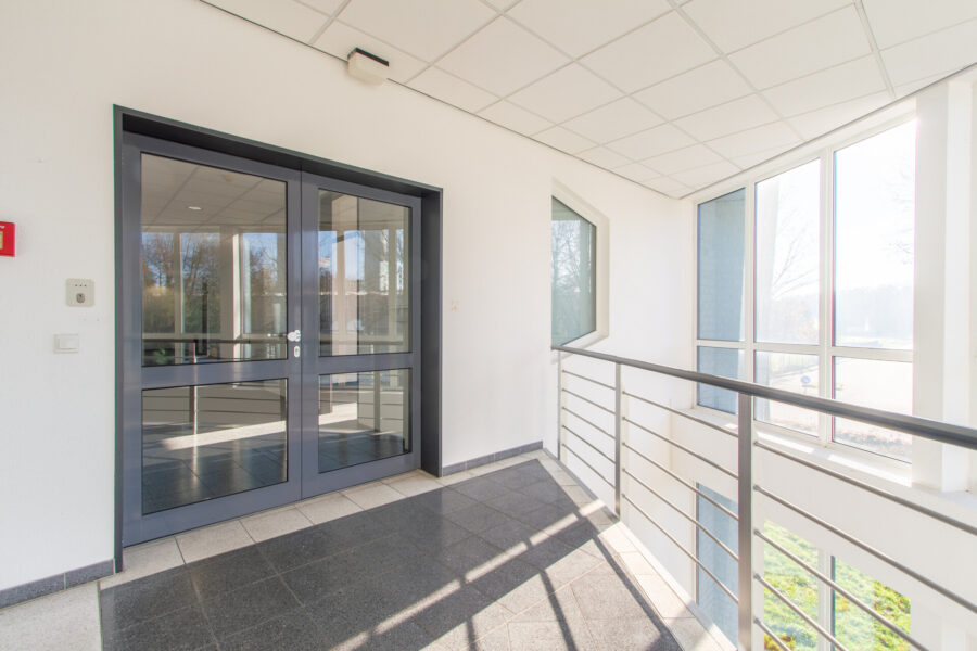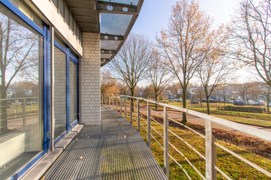 Der Zugang zum Balkon erfolgt über die bodentiefen Fenster der Büroräume.