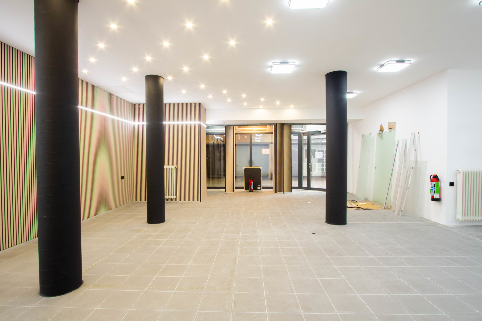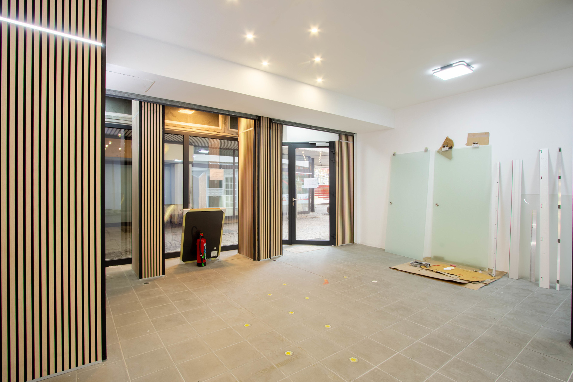 Die Gewerbeeinheit wurde aufwendig modernisiert und bietet eine hochwertige Ausstattung. Der großzügige, offene Grundriss ermöglicht eine individuelle Nutzung – sei es als Einzelhandelsfläche, Büro oder Dienstleistungsbetrieb. Die bodentiefen Fensterfronten bringen viel Tageslicht in den Raum und sorgen für eine einladende Atmosphäre. Zudem verfügt die Einheit über eine moderne Küche und zwei separate WC-Bereiche, die den Komfort für Mitarbeiter und Kunden erhöhen.