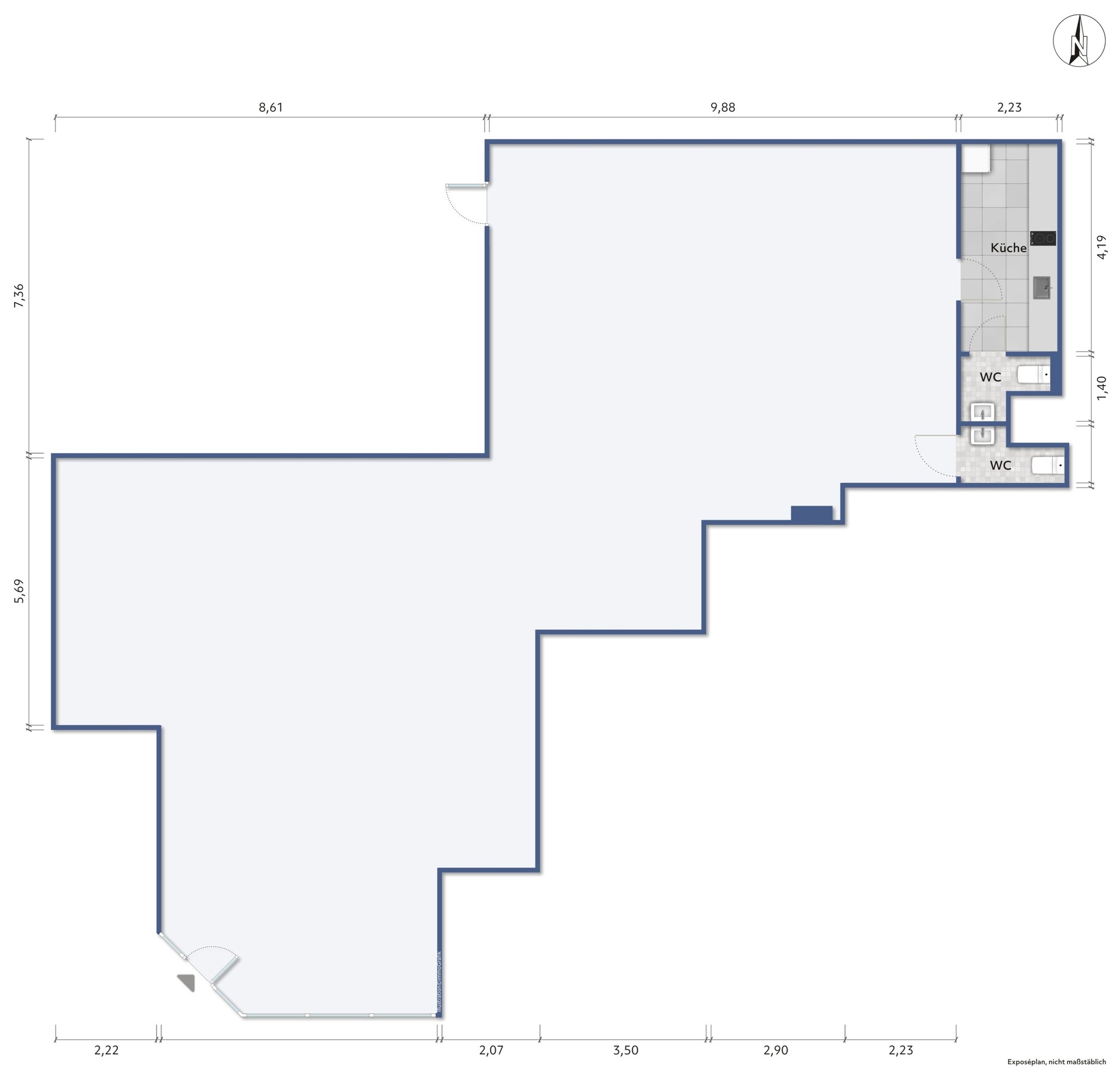 Große Gewerbefläche, zwei WC´s, Personalküche.