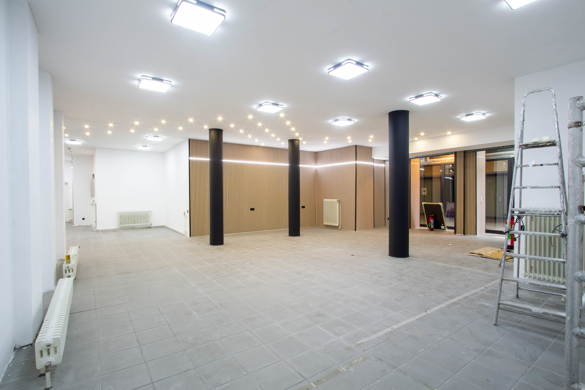 Es handelt sich um eine Gewerbeeinheit mit ca. 180qm, zwei WC`s und einer Personalküche. Die Räumlichkeiten wurden vorab aufwendig saniert.
