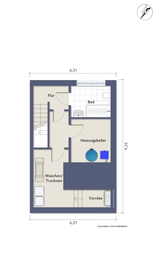 Badezimmer, Heizungskeller, Waschkeller, Flur.