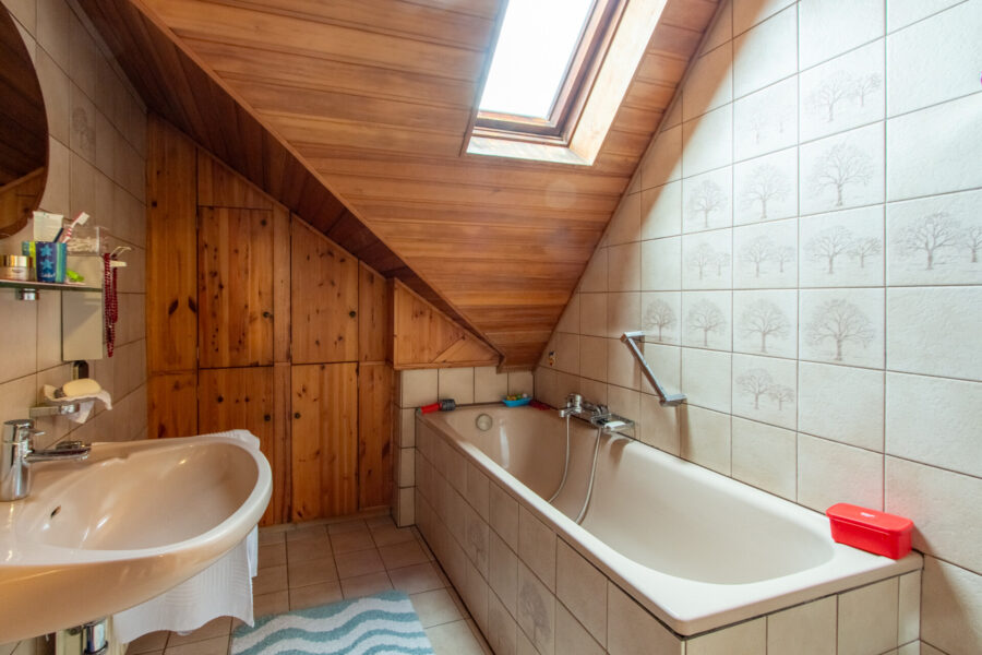 Obergeschoss: Bad mit Badewanne, Fenster, WC und Waschbecken