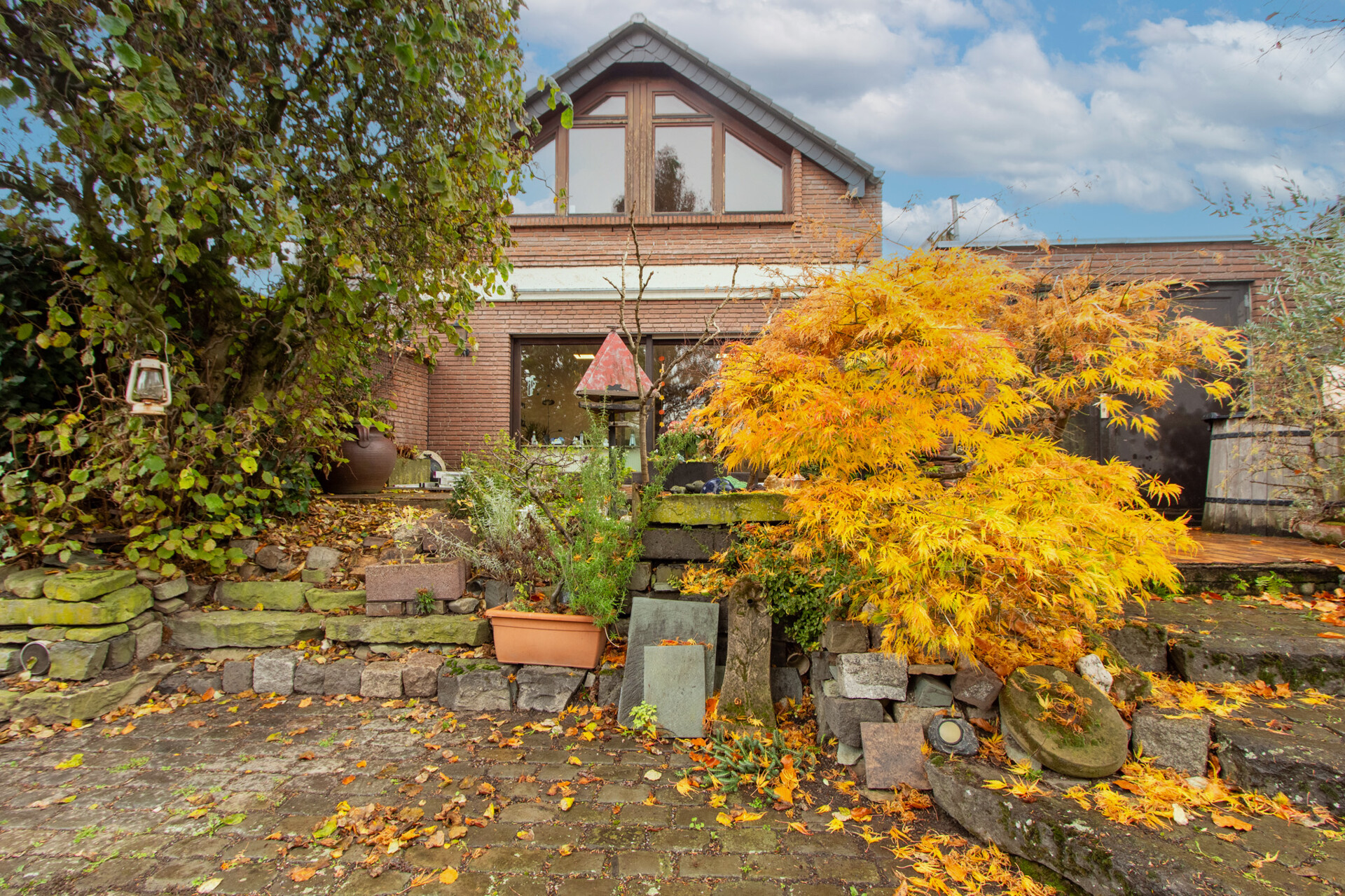 Der großzügige Garten verfügt über eine höher gelegene Terrasse, zwei Gartenhäuser und einen kleinen Teich, der zu erholsamen Stunden einlädt.