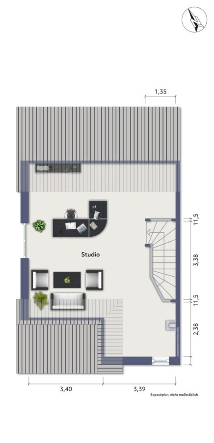 Dachgeschoss: offenes Studio.