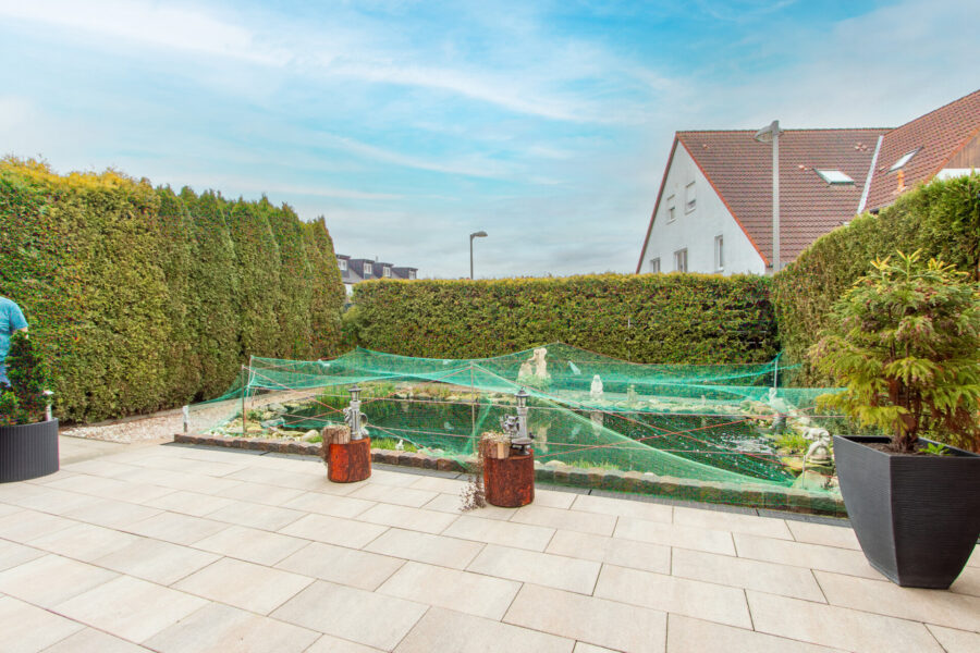 Im Garten des Hauses befindet sich ein großer Teich. Dieser kann weiter genutzt oder nach dem Verkauf umgestaltet werden.