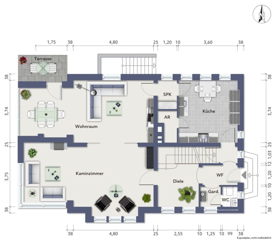 Die genaue Aufteilung kann dem Grundriss entnommen werden.