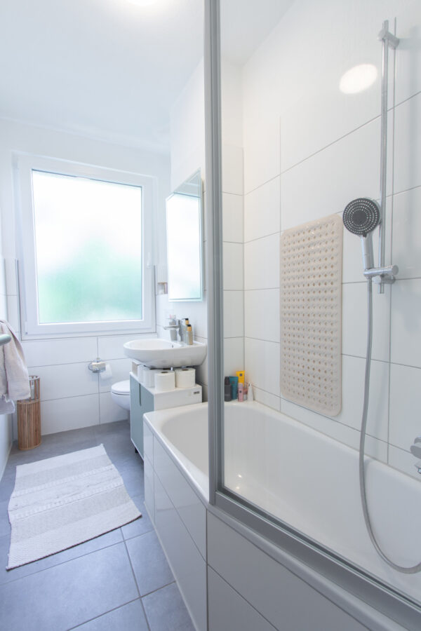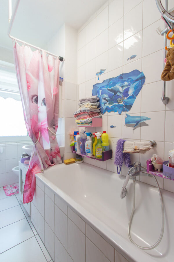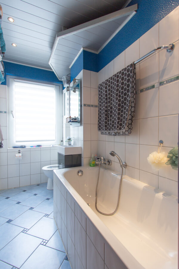 Bäder: Jedes Badezimmer verfügt über ein Fenster und eine Badewanne.