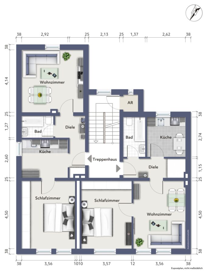 2. Obergeschoss: zwei Wohnungen