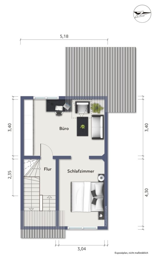 Bei der Fläche im Dachgeschoss handelt es sich um wohnlich ausgebaute Nutzfläche. Die Fläche zählt offiziell nicht zur Wohnfläche.