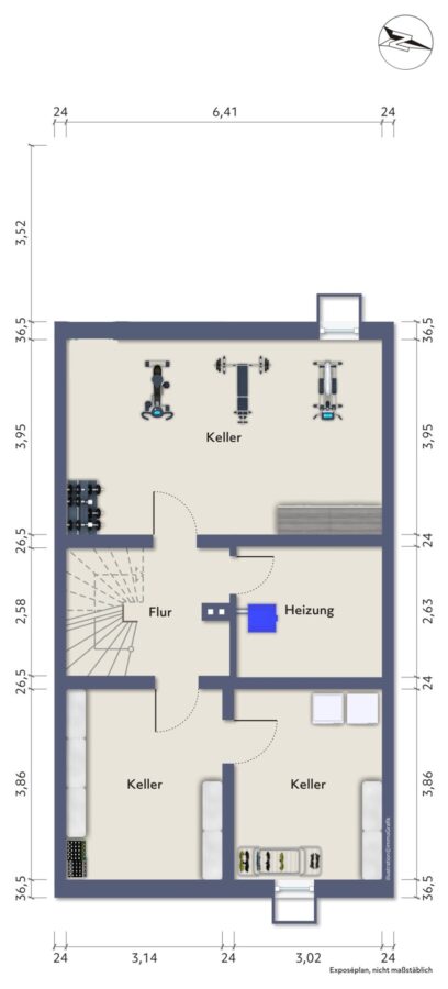 Der Hobbyraum im Obergeschoss ist offiziell keine Wohnfläche, zählt als wohnlich ausgebaute Nutzfläche und ist daher in der Flächenberechnung nicht aufgeführt.