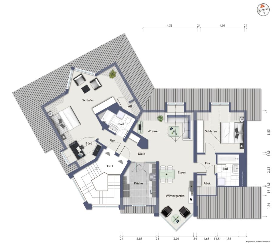 Die genaue Aufteilung entnehmen Sie bitte dem Grundriss.