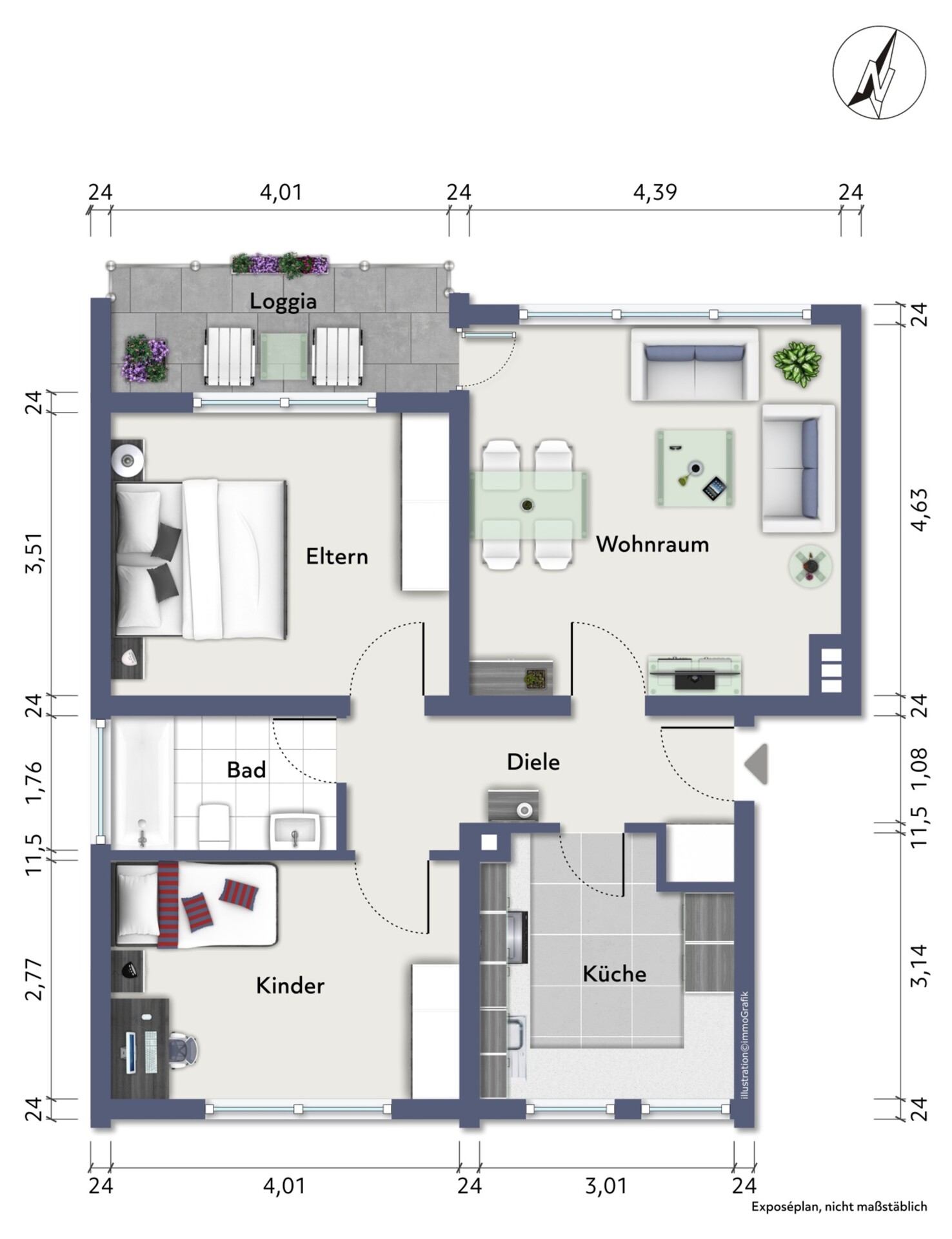 Die genaue Aufteilung können Sie dem Grundriss entnehmen.