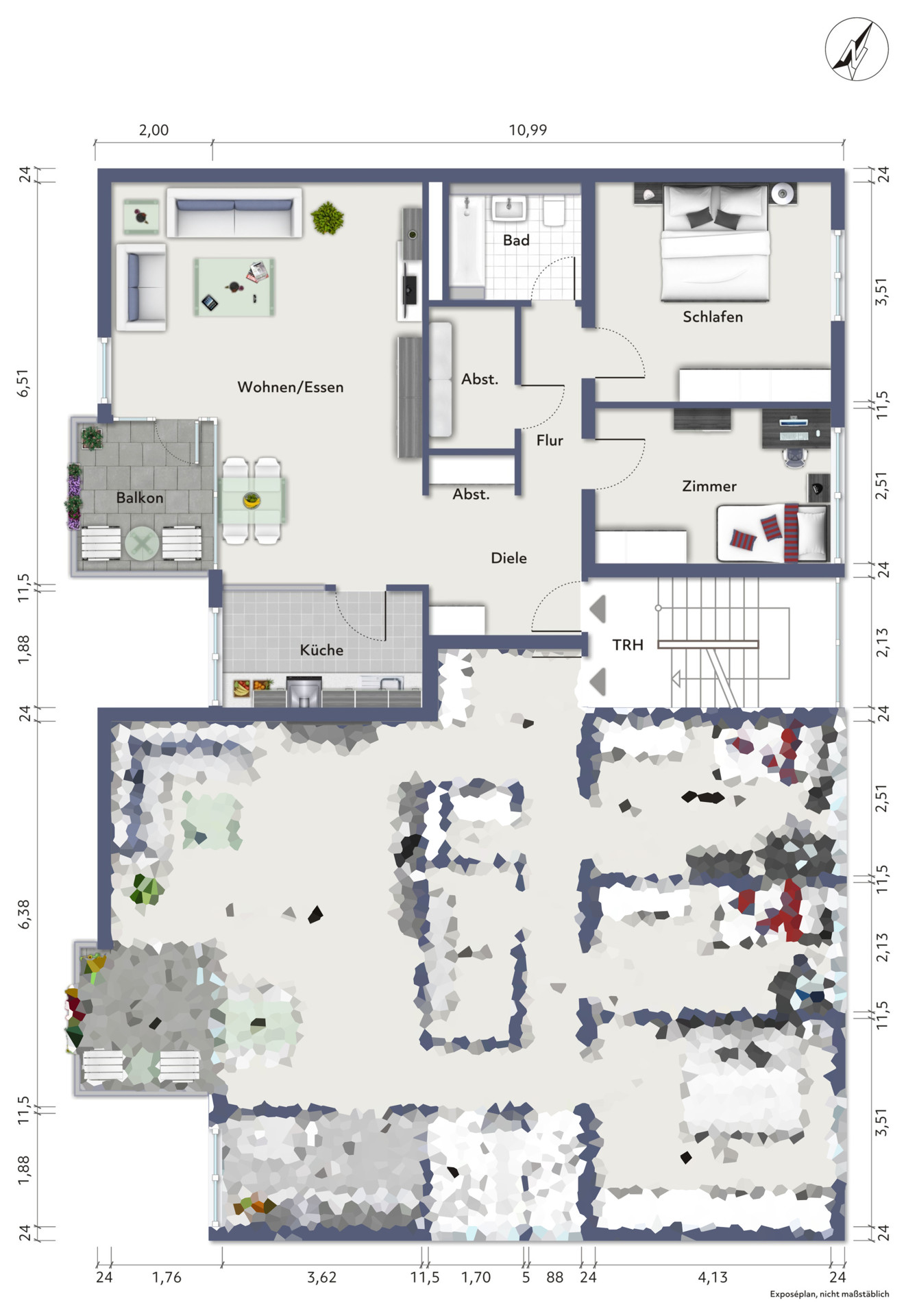 Die genaue Aufteilung entnehmen Sie bitte dem Grundriss.