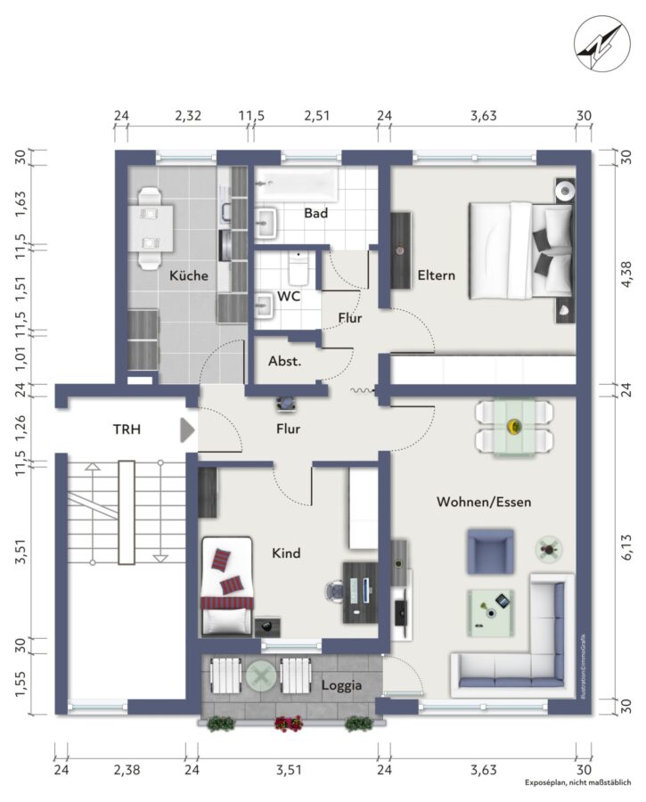 Die genaue Aufteilung entnehmen Sie bitte dem Grundriss.