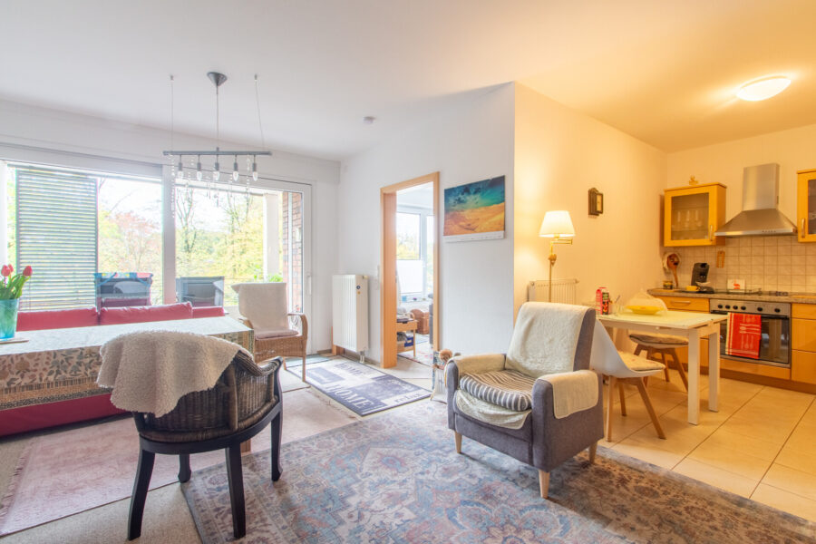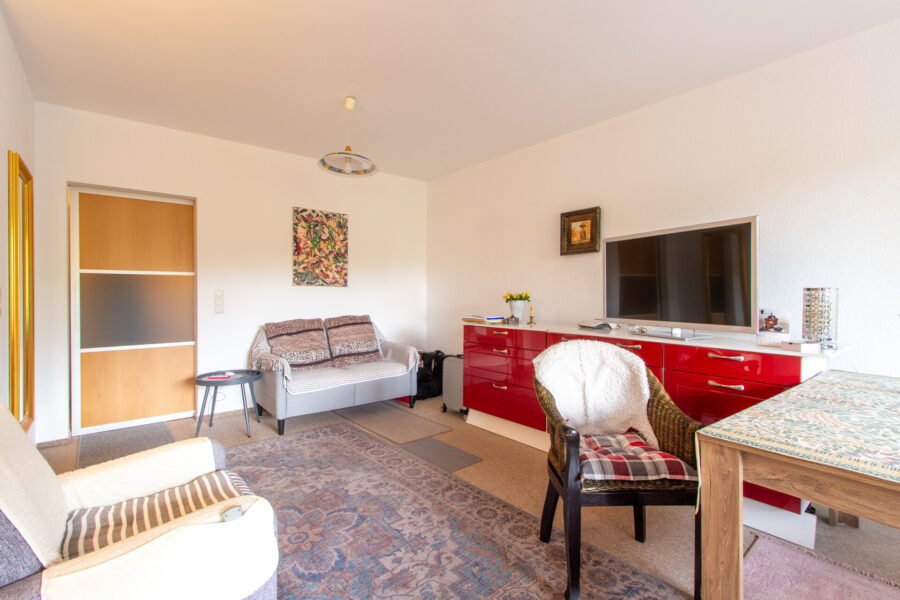 Teppichboden in Wohnzimmer und Schlafzimmer.