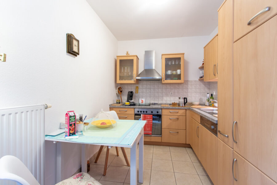 Die Küche inklusive der Elektrogeräte sind Eigentum der aktuellen Mietpartei. Diese werden gerne, gegen einen Preis von 500,00 €, zum Verbleib in der Wohnung überlassen.